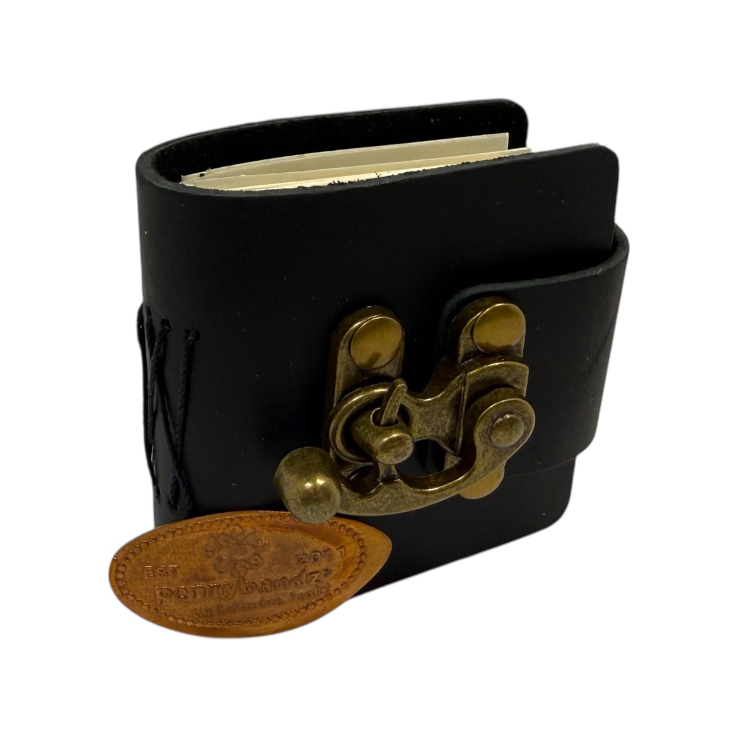 Pocket Penny Journal™ by Pennybandz® - Holds 12 pressed pennies in a beautifully rustic, leather-bound design with a vintage brass clasp