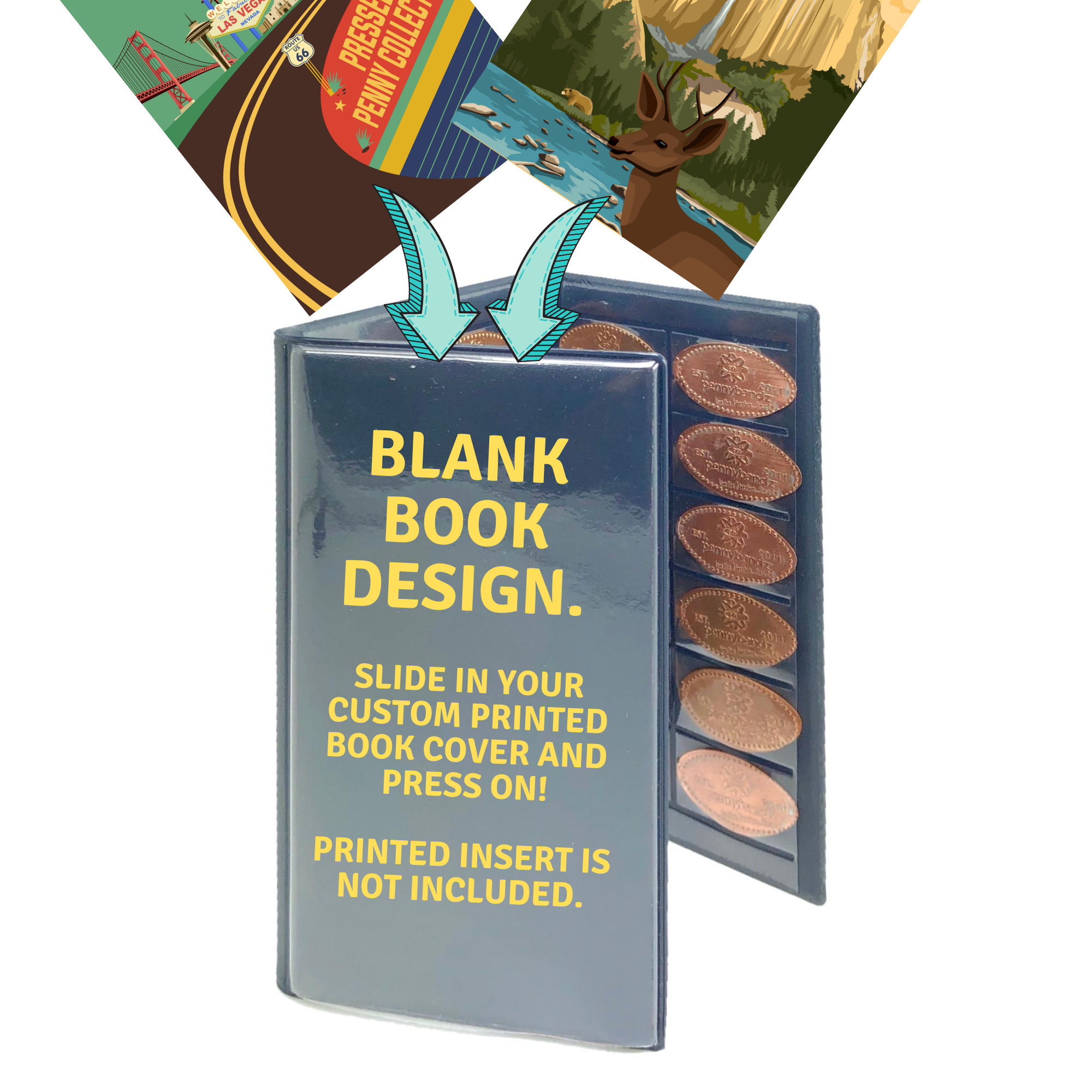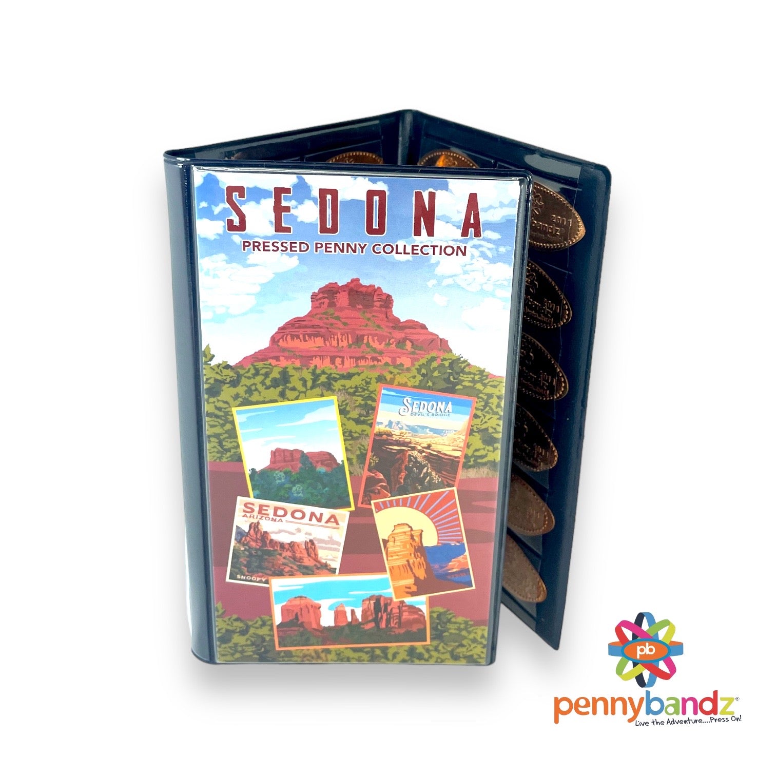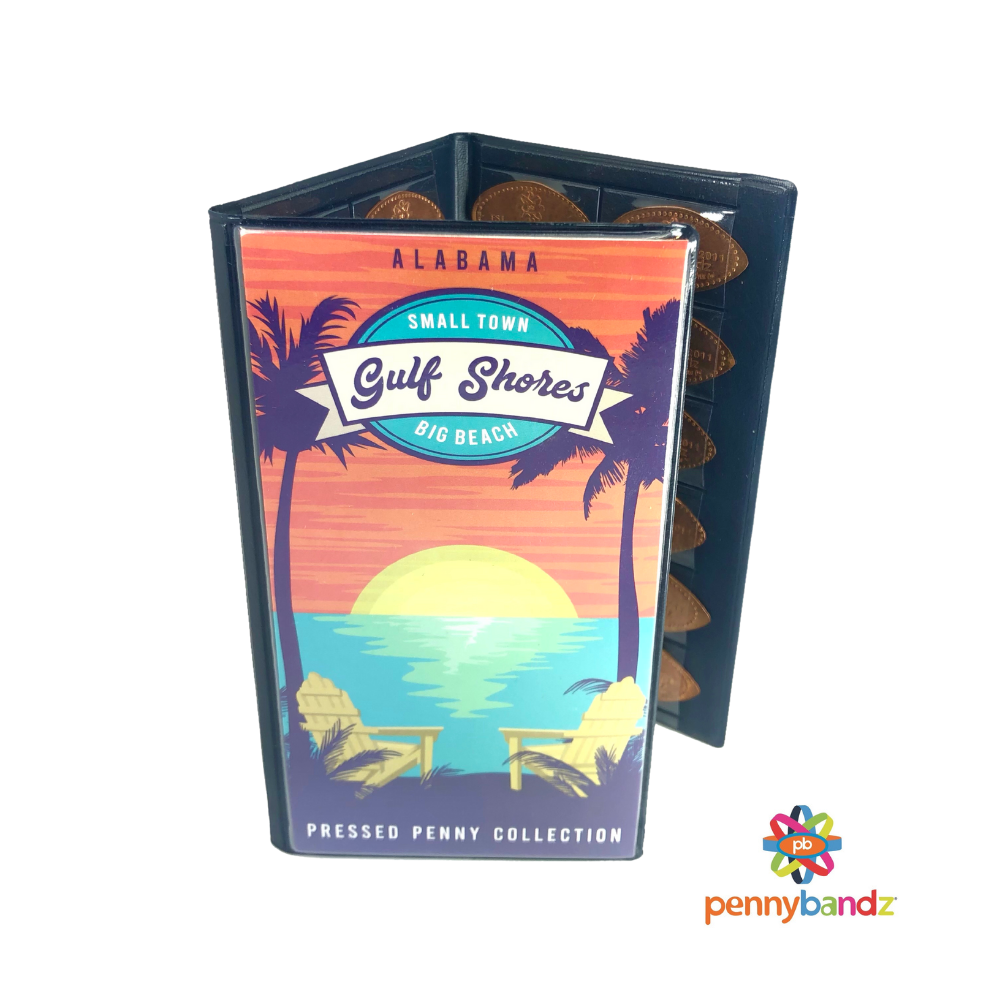 New Pennybandz Tri-fold Pressed Penny Souvenir Book is designed to hold 48 pressed pennies. Please see our selection of fun and unique books designs below.